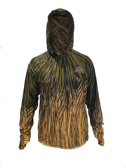 Our most popular hoodie yet! Lightweight, moisture-wicking, and customized with a large hood to ensure you're concealed, even if you have a cap on. We've also installed thumbholes in the sleeves to help conceal your hands from the sun while hunting and fishing, not to mention when you're putting a jacket on they keep your sleeves from bunching up in the jacket. This will be your favorite shirt you own!